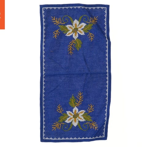 Blå broderet jule bordløber