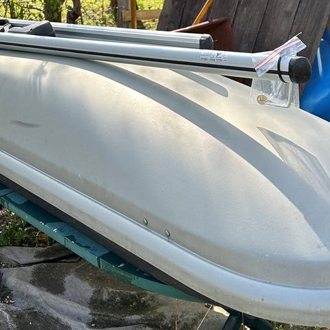 LxBxH 225x65x38. Grå - anvendt til skiudstyr. Tagbøjler til Ford Focus medfølger.