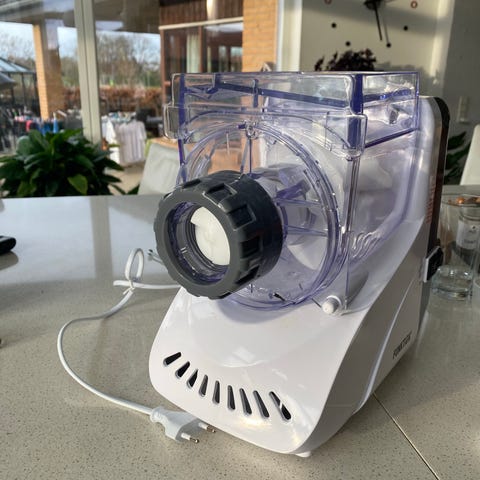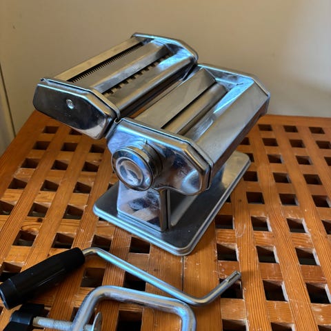 Når dejen er klar vender rørearmen selv og presser pastaen ud. Hvis ikke den gør det når du syns dejen er klar kan du manuelt trykke på knappen.