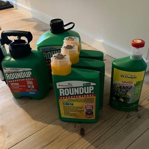 Der følger en mindre flaske med, hvor der ikke er meget tilbage i, men der er en sprøjte, som kan anvendes til behandling af ukrudt.