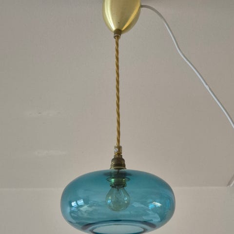 Flot mundblæst glaslampe fra Ebb & Flow. Lavet i røgfarvet genbrugsglas Ø 21 cm