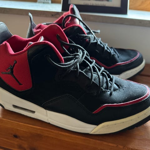 Air Jordan Sneakers i størrelse 42. Skoene er sorte og designet til hverdag og sport. Materialet fremgår ikke specifikt, men skoene har klassisk Air Jordan-stil og er velegnede til casual brug.