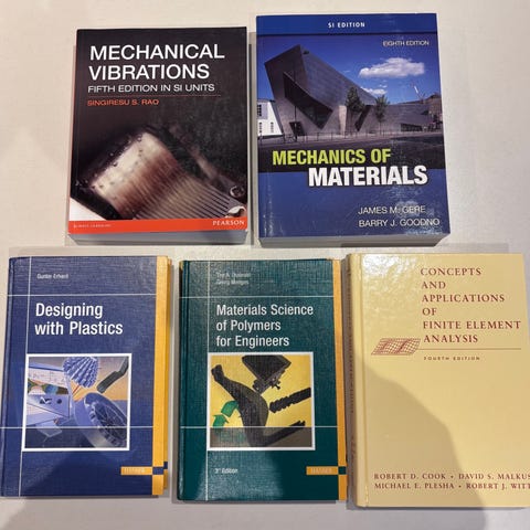 Teknologi og design faglitteratur inden for arkitektur og design, der dækker emner som produktdesign, teknologianalyse, termodynamik, materialer, maskinelementer, mekanik, dynamik og vibration. Bøgerne indeholder teoretiske og praktiske aspekter, herunder metoder og samarbejde, avanceret overfladeteknologi, materialers egenskaber og miljøpåvirkning samt design og analyse af maskinelementer.