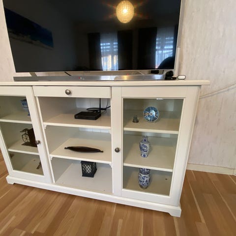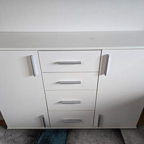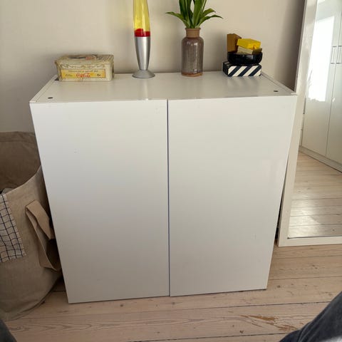 Sælger min kommode med otte pladser for opbevaring plus top. 2 kasser medfølger samt 2x2 skuffer og 1 låge, som også kan ses på billedet.