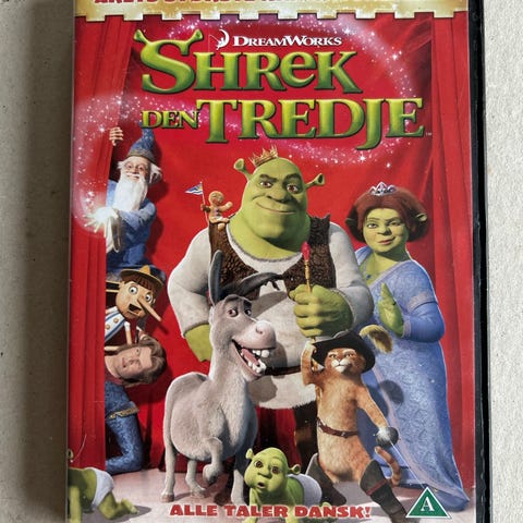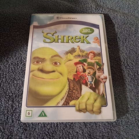 DreamWorks Shrek DVD. Animated movie featuring characters such as Shrek, Donkey, and Fiona. Includes original English audio and subtitles, bonus material with behind-the-scenes content, and interactive tools. Suitable for general audiences.