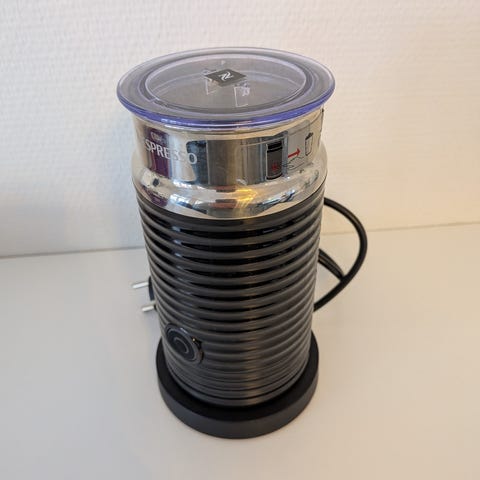 Sprit ny og uåbnet. Nespresso Aeroccino 3 mælkeskummer i sort. Designet til at skumme mælk til kaffe og andre drikkevarer. Kompakt størrelse og nem at betjene med en enkelt knap. Velegnet til hjemmebrug.