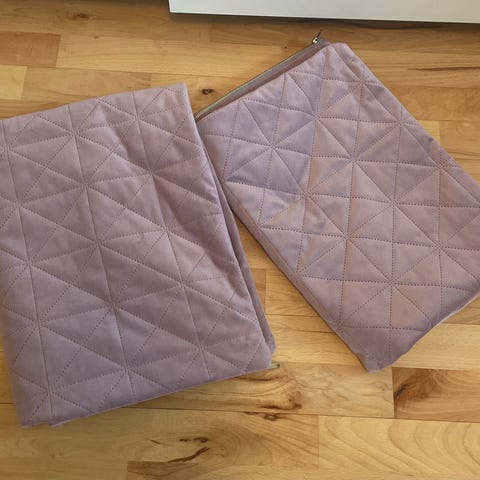 To styks pudebetræk i målene 45x45. Kan vaskes ved 30 grader. Ingen synlige pletter, men almindelig brugsspor.
