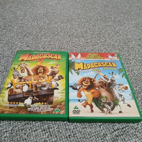 Madagascar DVD med dansk sprog. Inkluderer filmen 'Madagascar' med karakterer som løven Alex, zebraen Marty, flodhesten Gloria og giraffen Melman. Passer til børn og familier. DVD-format.