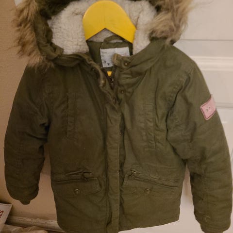 Flot vinterjakke med pelskrave str. 116.