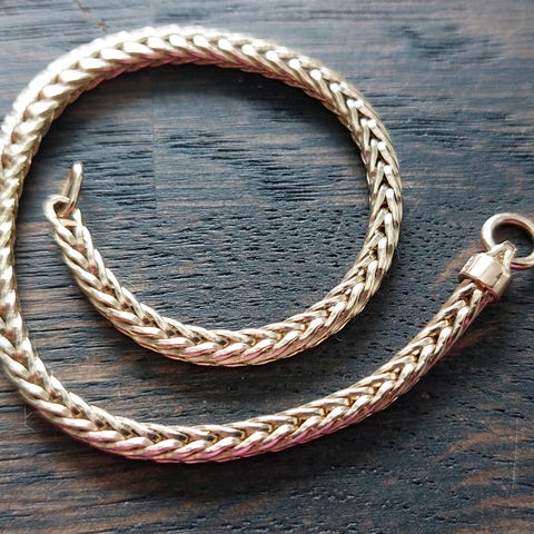 Armbånd med troldekugler af sølv. 8 enkelt led og 6 dobbelt led, 21 cm og 40 gram.