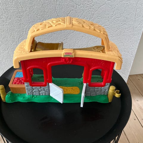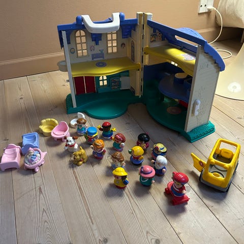 Dukkehus, flyvemaskine og diverse dukker + tilbehør.