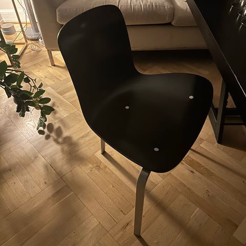 6 stk hvide Poul Kjærlund PK8 spisestuestole med brugsspor. Sælges samlet