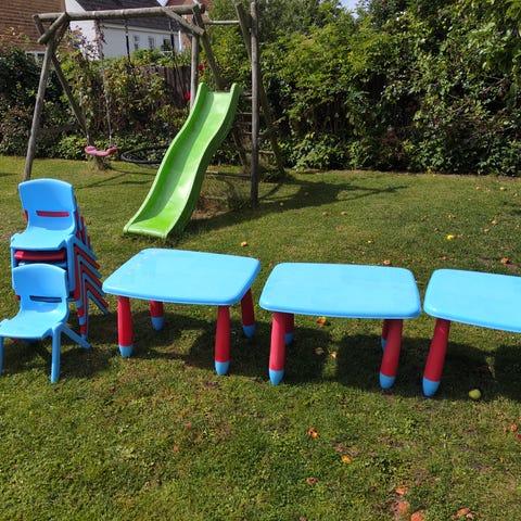 Plastik børnebord med tre skamler
