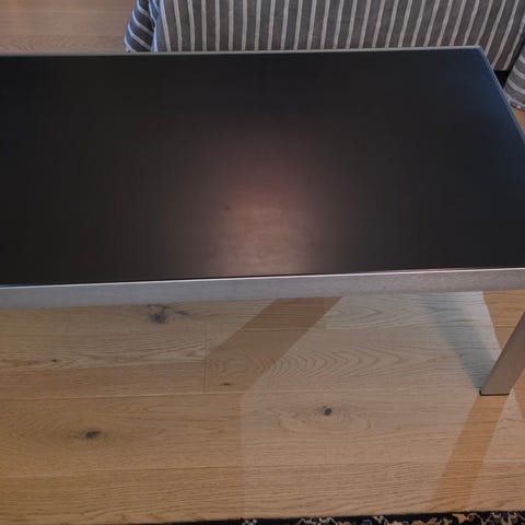 Arne Jacobsen sofa bord med plade af sort/grå kompositog stel med profilleret fod. Mærke under base med Compresin.Står rustikt og flot med en lille plet/udfyldning på det ene hjørne . Se billedeBordet har stået som cafe bord , og senere omformet til sofabord.70 + 70 bred72,5 cm højtSE DEN I VORES SHOWROOM I ESBJERG STORCENTERADD : GL VARDEVEJ 230 6715 ESBJERGÅBENT HVER TORSDAG FRA KL 14 -17.30