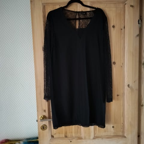 VILA lang sort glimmerkjole – str. L – slids foran – elegant festkjole