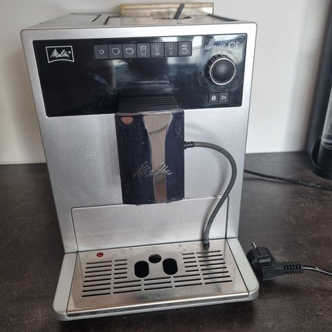 Espressomaskine sælges. Sælger en Melitta Caffeo Solo fuldautomatisk kaffemaskine, som er velholdt og fungerer upåklageligt. Maskinen er passet godt på, regelmæssigt rengjort og afkalket, og den laver en god kaffe. Den er nok 8 eller 10 år gammel og købt brugt, men tidligere ejer har brugt den meget lidt. Sælges da jeg gerne vil prøve en ny type kaffemaskine. Kan evt leveres i Østjylland.