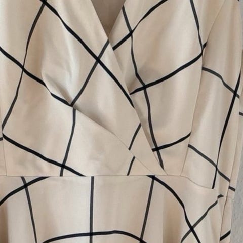 Karen Millen strikkjole i størrelse M. Super flot og sidder flot på kroppen. Kjolen har et mønster med brede striber i sort, hvid og beige. Kjolen har lange ærmer med stribede detaljer. Der er en mindre plet på kjolens forside. Kan bruges både til hverdag og fest. 58% viskose - 23% polyester - 17% polyamide- 2% elastin