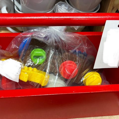 BørneværkTøjskasse trækasse med håndtag legetøj sælges uden værktøj
