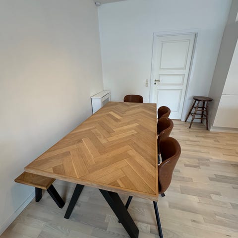 Bænk og tre stole