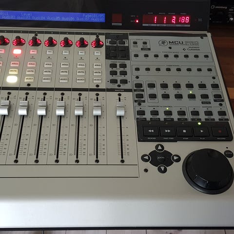 Knapper for hver kanal med Rec-enable, Solo, Mute, Select og Monitor