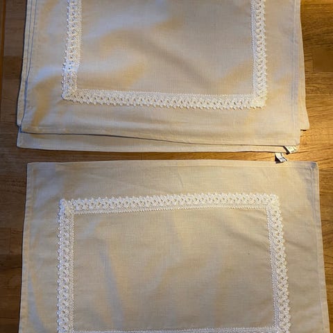 Fine dækkeservietter i farverne grå, brun, sort og beige.