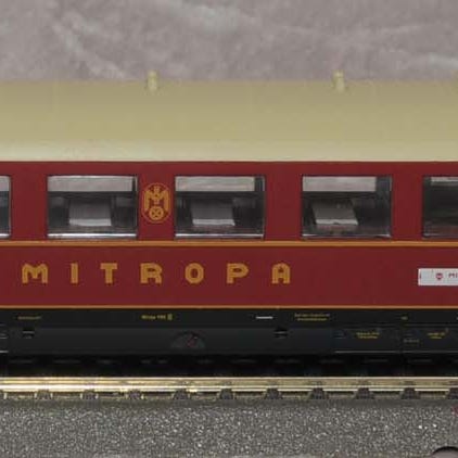 Schicht Mitropa Speisewagen modeltog i rød farve. Modellen forestiller en spisevogn og er detaljeret med vinduer og tekst på siden. Togvognen er designet til modeljernbane og leveres i original emballage. Modellen er med lys, men ikke LED.