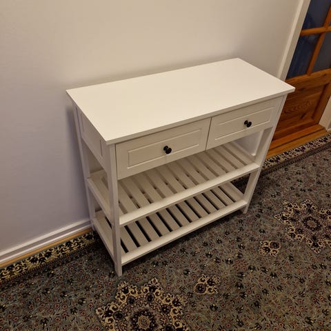 Giv entréen et stilrent løft med RAVNKILDE entremøblet. Med fire hylder og en praktisk bøjlestang får du masser af opbevaringsmuligheder – og som man også kan se på billedet, er der god plads til at organisere diverse ting. Den lyse sandfarve og det lette design gør det nemt at passe ind i enhver indretning.