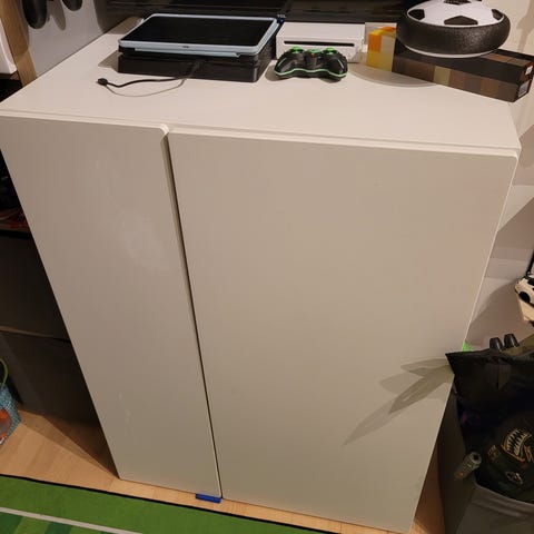 I god stand og god kvalitet. 300 pr stk. 500 for begge . Ben kan købes billigt i Ikea hvis man ønsker ekstra højde. Ligeledes kan hylder, bøjlestænger mm. købes til i ikea