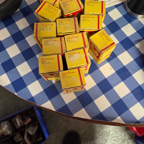 Mazda generator til bil, brugt del. Passer til specifikke Mazda-modeller. Fremstillet af metal med elektriske komponenter. Velegnet til udskiftning af defekt generator i bilens elektriske system.