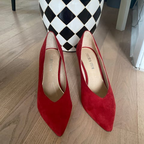 Fin beigefarvet ruskindssko med 5 cm høj stilethæl.