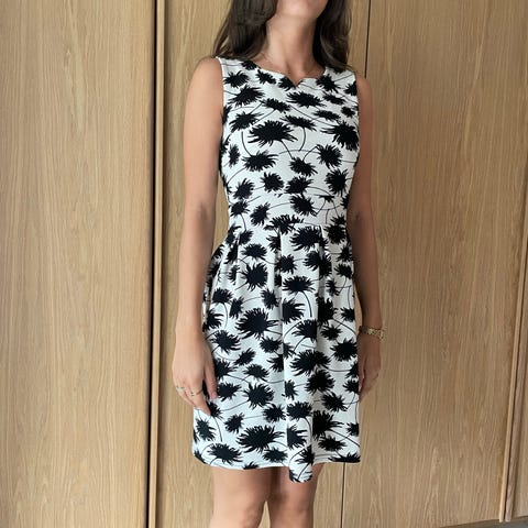Zara hverdagskjole i beige farve, størrelse M til damer. Fremstillet af 90% polyester og