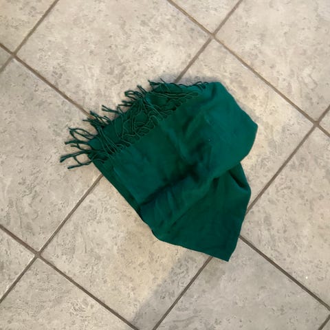 Pashmina i farven lys beige og med cirka mål 200 X 90 cm ekskl. frynser. Materialet er 70% kashmiruld og 30% silke. Farven ved mærkesedlen er ikke retvisende. Blusen medfølger ikke.