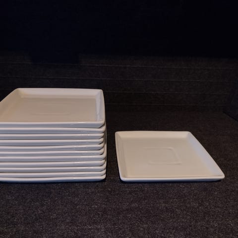 10 stk, 15,5 × 15,5 cm, tåler maskinopvask. Flotte, stk pris 20,- sendes evt. med pakkepost eller kan afhentes i Aalborg Øst