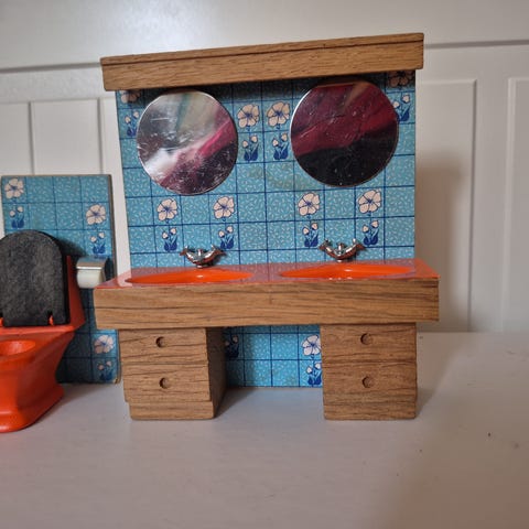 4) Lisa dukkehus, badeværelse, håndvask m plet