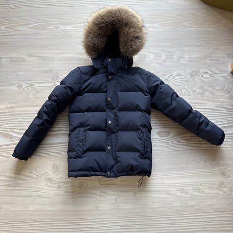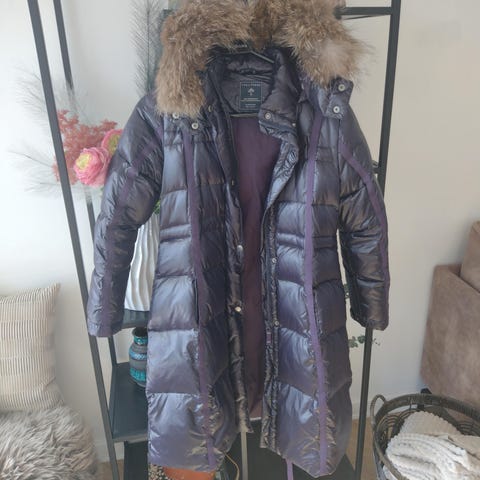 Lang jakke /frakke ver de terre med dun og med ægte pels på hætte str 14 år eller lille dame størrelse er som ny