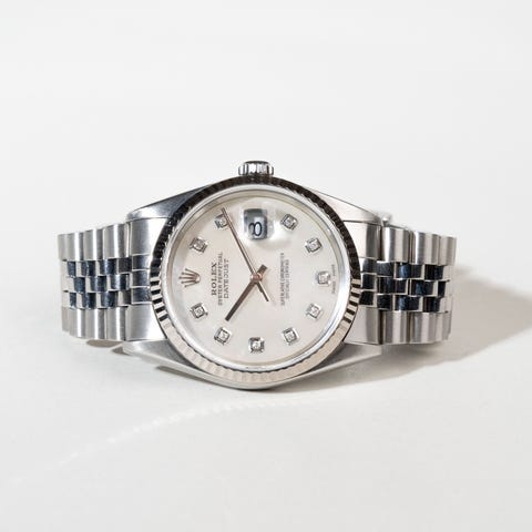 Rolex Datejust 16234 – Mother of Pearl & Diamonds Et tidløst og luksuriøst Rolex Datejust i stål med 18 kt hvidguldsbezel. Denne model imponerer med sin naturlige perlemorskive, hvor hvert ur har sit unikke spil i farverne, og timemarkørerne er smukt indfattet med diamanter. Den klassiske Jubilee-lænke giver et elegant og komfortabelt udtryk, mens det automatiske Calibre 3135 sikrer præcision og driftssikkerhed. Et eksklusivt valg for dig, der ønsker klassisk Rolex-design med et raffineret, feminint touch.