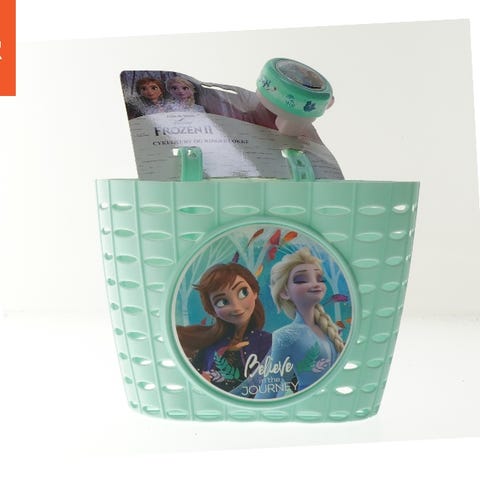 Sødt sæt med Frozen Cykelkurv, Ringeklokke og sæde til cyklen så dukke 🥰 baby kan komme med ud og køre på Cykel.
