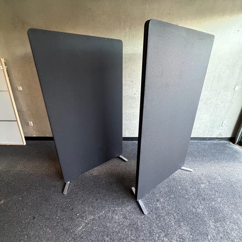 Brugte Lintex skærmvægge i grøn bestående af 3 fag sat sammen til en væg. Skærmvæggen har 2 "T" fødder og 2 sæt runde fødder.