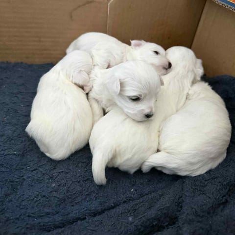 Vi har en sød malteser-dreng (tæven + fem dreng har allerede fået et nyt hjem), som søger en kærlig familie. De er alle blevet chippet, vaccineret (både 8 og 12 ugers vaccine) og sundhedstjekket og er friske og inden for normalvægten.