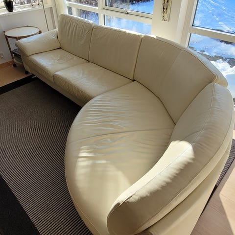 Sofaen er købt i november 2022 og står rigtig pænt uden pletter, misfarvninger eller synligt slid.