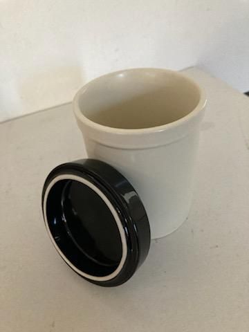 Keramik, Krukke med låg, Herne keramik, Krukke med låg -og meget fint mønster. Krukken er 12 cm høj- de er kvardratisk ( 7.5 cm). Den er fra Herne keramik. Den har ingen afslag eller revner.