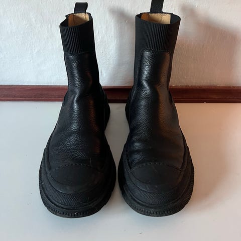 Angulus støvler i sort læder, størrelse 41. Lidt små i størrelsen - måske passer de bedre en størrelse 40. Støvlerne har en robust sål og en glat overflade. Velegnet til daglig brug og forskellige vejrforhold.