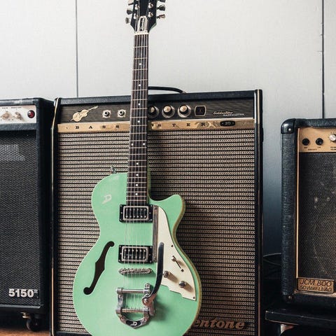 Tribute guitar til rock legende. Samlerobjekt. Meget sjælden guitar (én af 20 i verden iflg. Duesenberg Guitars). Dette er versionen med Les Trem.