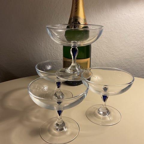 6 stk. krystal champagne skåle fra Cristal d’Arques.