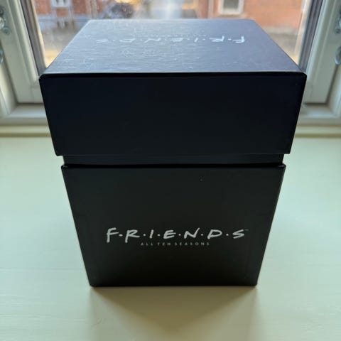 Friends All Seasons DVD Box Set containing all episodes from the TV series Friends. The set includes multiple DVDs housed in a black box with Friends branding. Suitable for fans and collectors interested in the complete series.