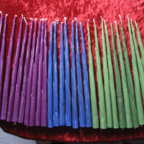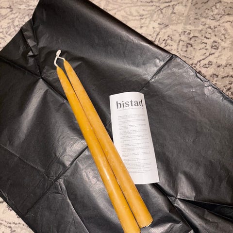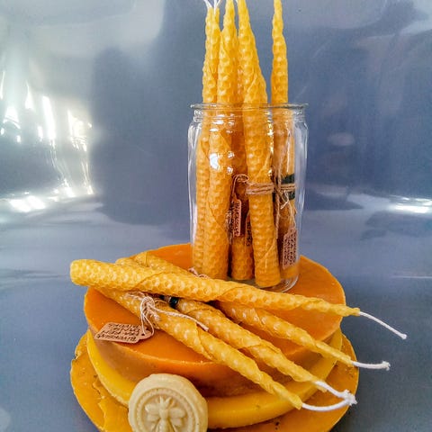 Håndrullede runde bivokslys af ren dansk bivoks. Brændetid på ca. 6 timer og 45 min. 🐝 🐝 🐝 Pris pr. stk.