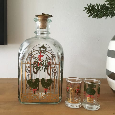 Holmegård Juledekoration bestående af to glasflasker med julemotiver .Kan bruges til julesnapsen.. Flaskerne har forskellige motiver, den ene med en vinterscene og den anden med en adventskrans. Flaskerne er bl.a. designet til brug i julen. Kan afhentes i postnummer 4070, alternativt sendes på købers regning. Modtager kontant og mobilpay. Pris 65 kr. pr. stk., begge for 120 kr.