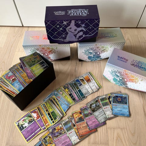 Sælger Pokemonkort i æsker (ETB-kasser), hvor hver æske indeholder mere end 500 kort! Perfekt til både begyndere, samlere og entusiaster af Pokémon TCG.