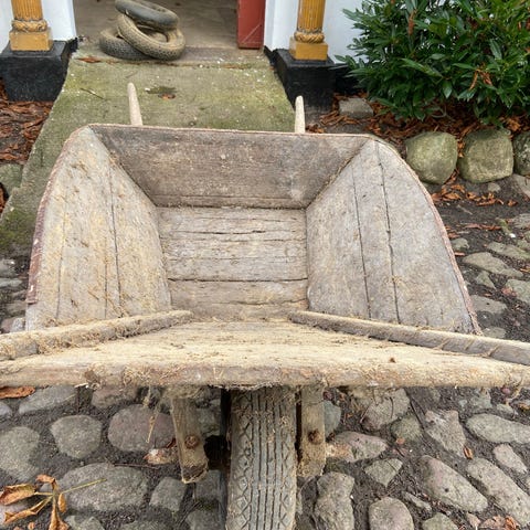 Selve hjulbøren er ormædt, og den medfølger til blot inspiration til din opbygning af din egen træ trillebør / hjulbør / trillebør.