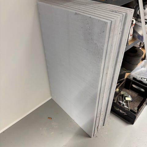 5 stk. 2,5x61x100cm. og 5 stk. 5,0x61x100cm. Skamol plader samt 5,5 pose skamol lime mortar klæber og 2 poser skamol smooth plaster puds sælges samlet for 2500 kr. eller evt. Skykvis